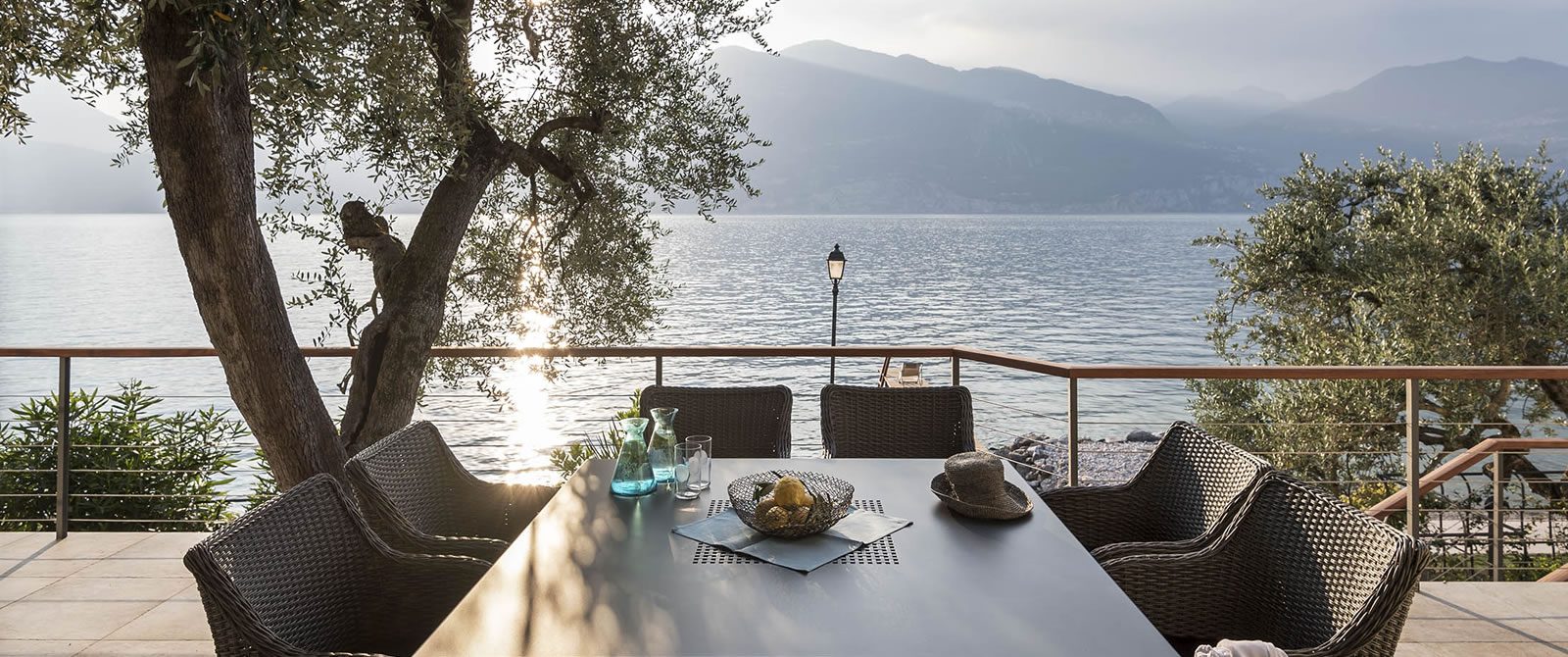 The Villa am Lago is available to rent by the week by up to 6 people. Pure holiday happiness spread over a generous 300 m², furnished with a lot of love for detail, and an appreciation of beauty and high quality. The villa has 3 stylishly appointed bedrooms with high quality box spring beds and snug damask bed linen, equipped with air conditioning and satellite TV plus each has its own neighbouring bathroom. Fluffy terry towels and a basket with beach towels provide optimum comfort and that fantastic Lake Garda feeling. Without a doubt the heart of the villa and the place around which your valuable time together will revolve is - alongside the panoramic terrace - the approximately 80 m² parlour, which is flooded with light. A place for people to get together, make plans, chat, enjoy themselves and celebrate. And right next door is a fully-equipped kitchen with hob, oven, dishwasher, fridge, and a coffee and espresso machine. A PA system, safe, central heating, internet access, washing machine and dryer plus 2 parking spaces are also available.A large, private bathing pier is at your disposal for your bathing fun.